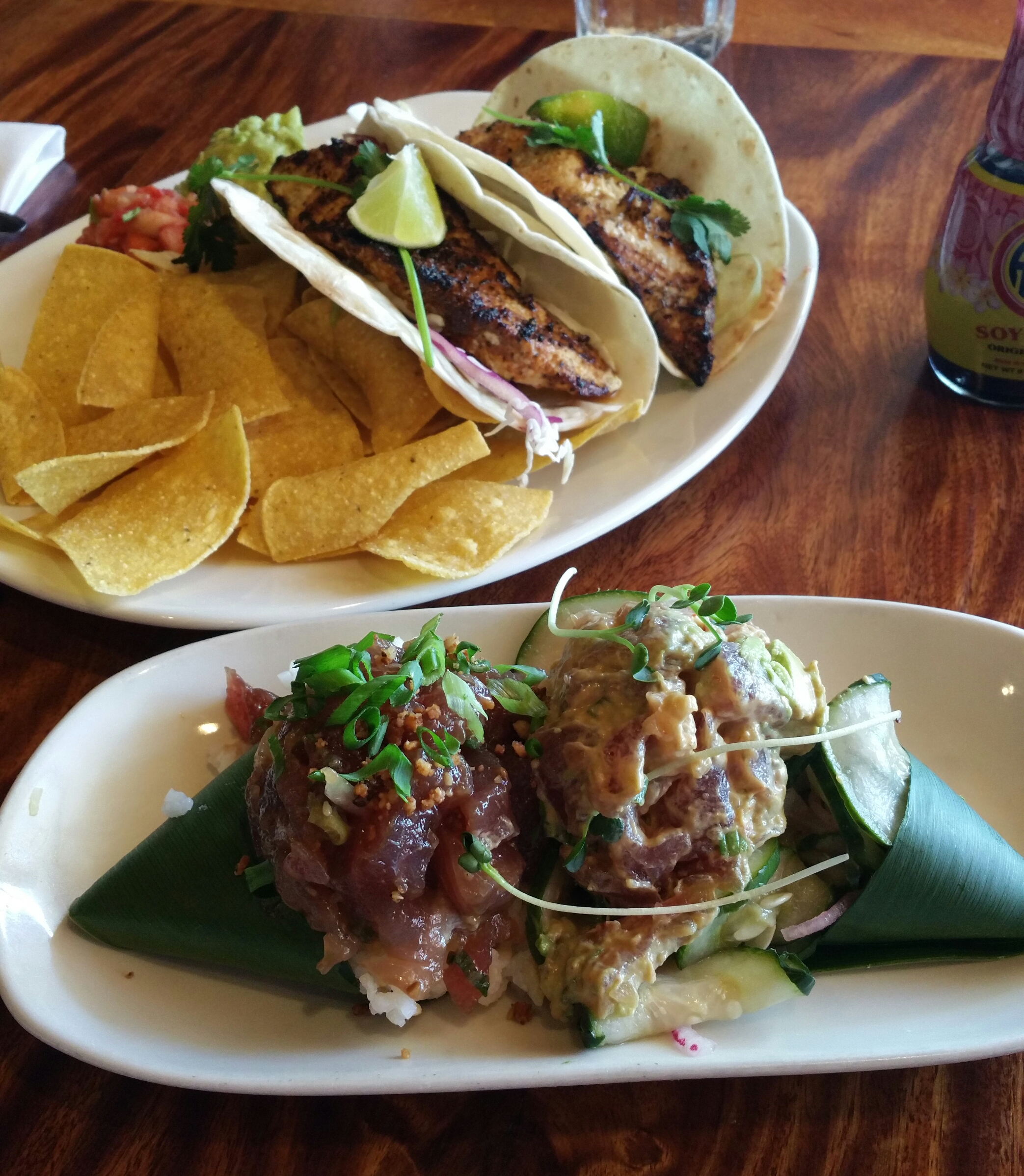 We also dined at Duke’s on the recommendation of one of George’s work colleagues. The food was yummy. We wisely had an entrée which was a kind of Hawaiian tuna tatare and cajun fish tacos.