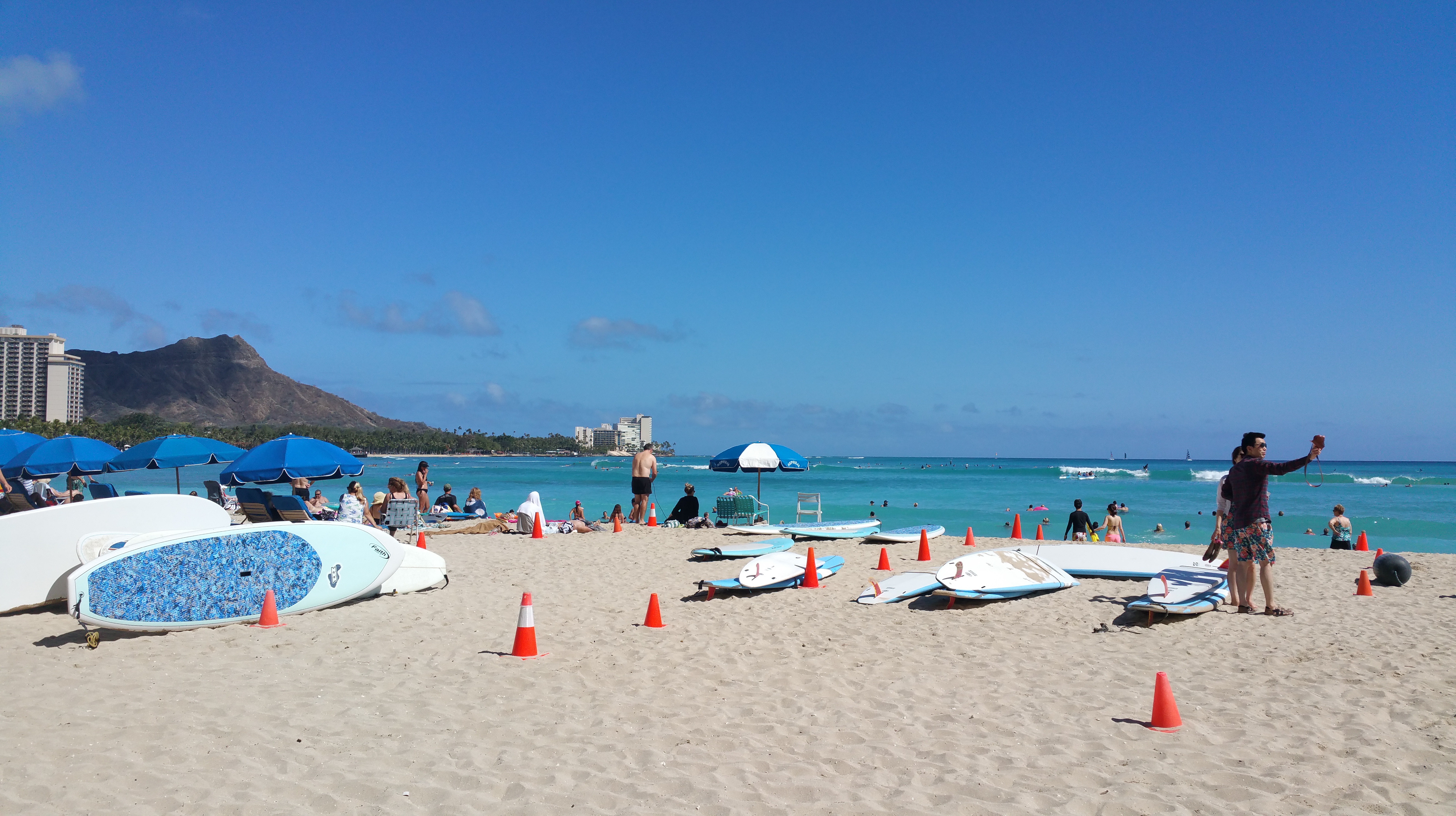 Anyhoo, we had a 6hr stop over in Hawaii on our way to Toronto. To make the most of it, we went to Waikiki beach…in the middle of the day…