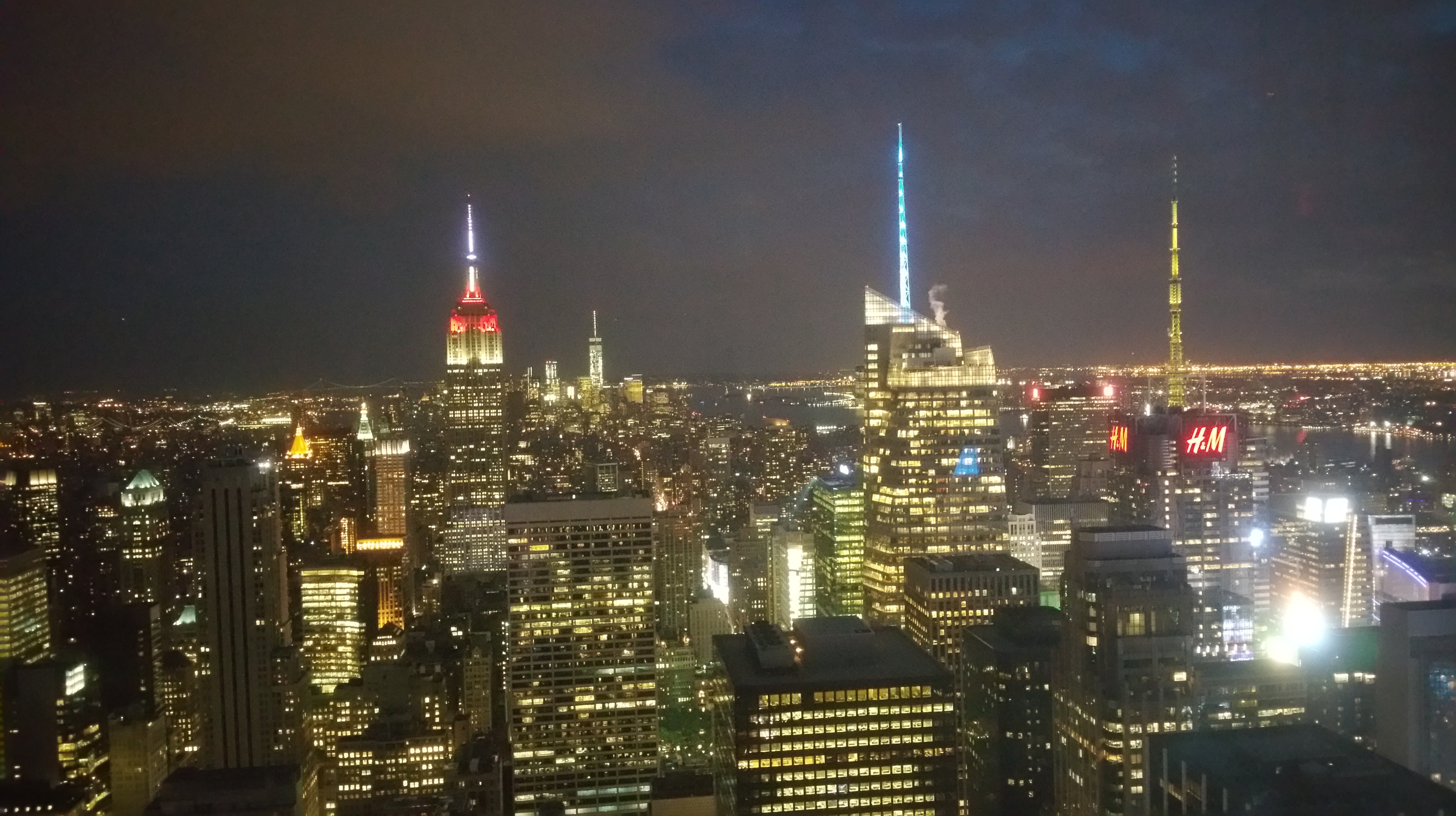 So after our huge walk seeing the sights of the northern area, it was easier to get to the train by walking to the very south end. So we did. By the time we were back in our room we were pooped! We didn’t need dinner (just had some delicious cheap berries) and after some well deserved rest we headed back to the Rockafeller Centre to do the Top of Rock view.