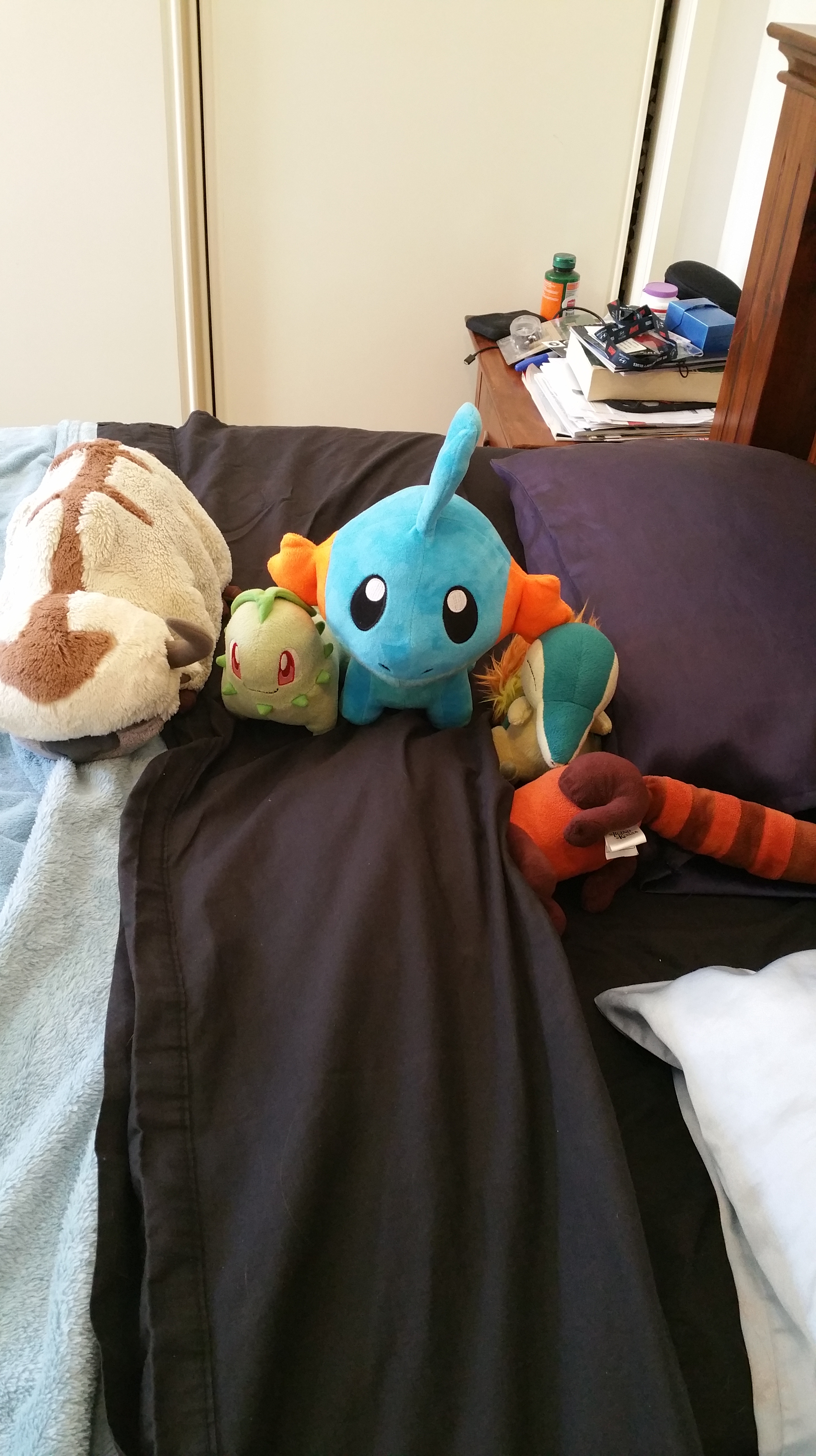 For some reason, he also supports Carlton like George. He also takes it very hard when Carlton lose, which is often. He has taken to hiding under blankets when this happens. Stitch is very good at offering support and hugs though. It can still take days for Pabu to emerge from the covers. Often all you can see is his tail sticking out.