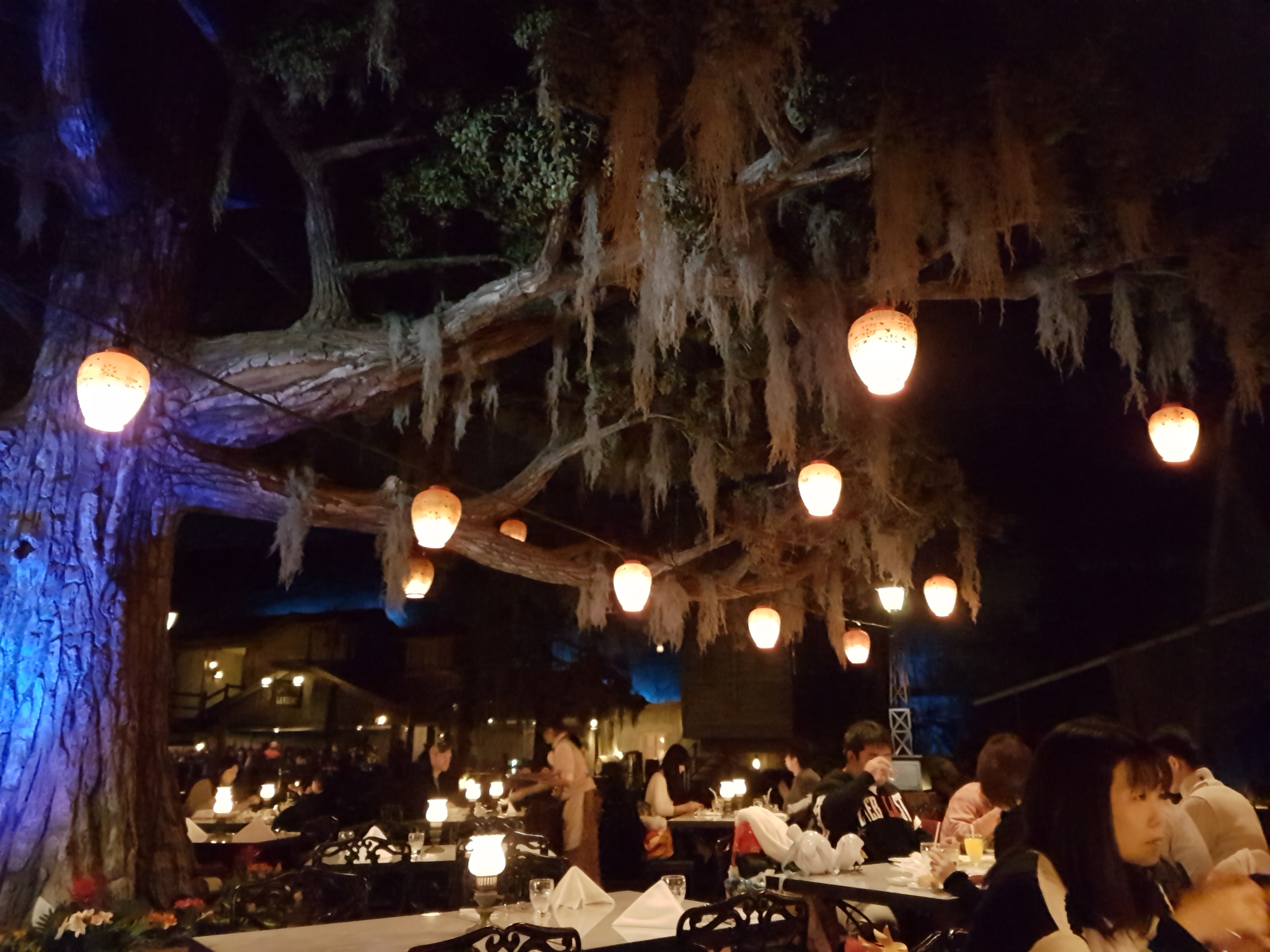 The cool decor. The restaurant itself is set behind the Pirates ride so kept the swamp theme.