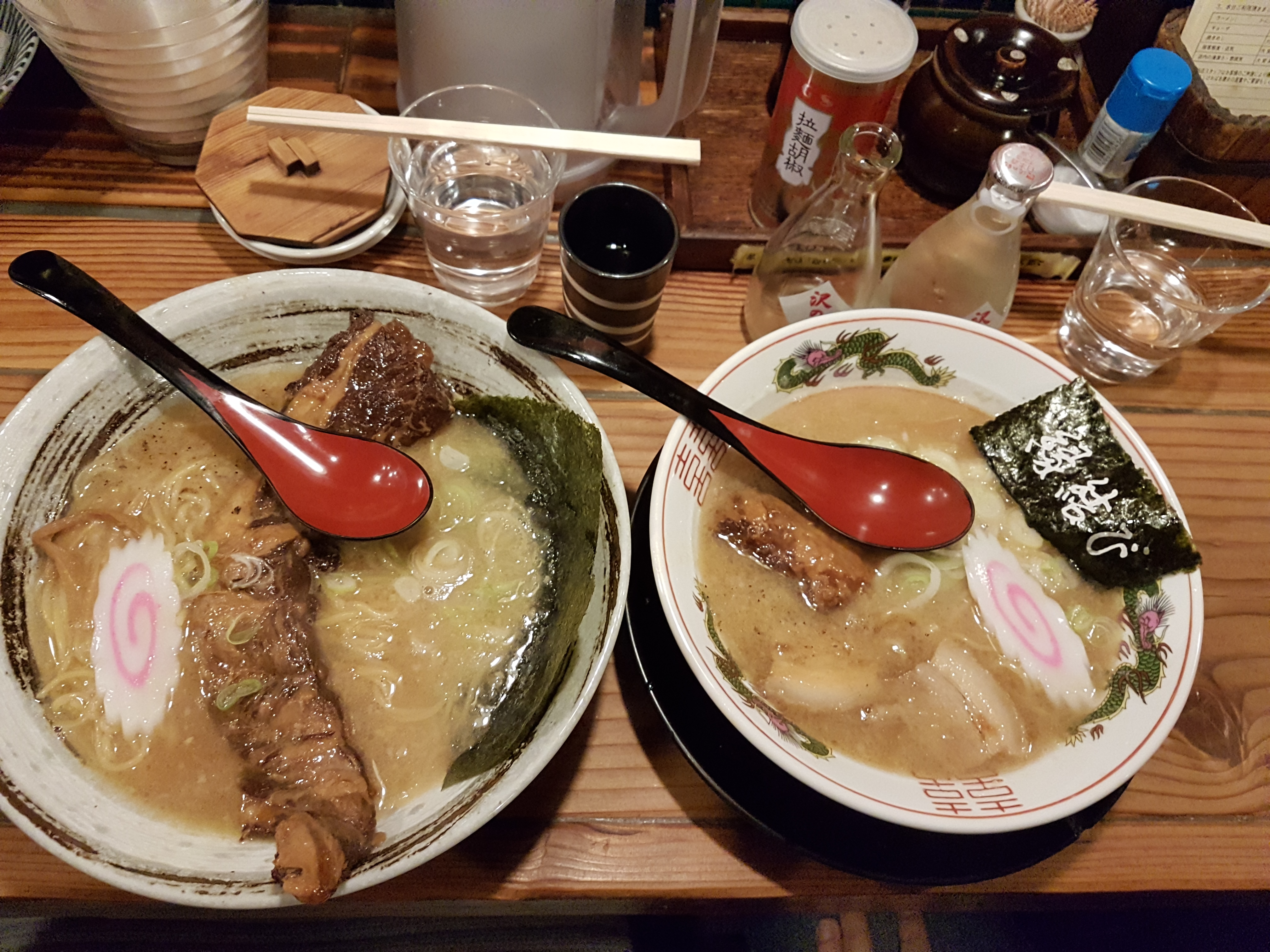Left is pork rib ramen (soooo good) and right is happiness ramen.