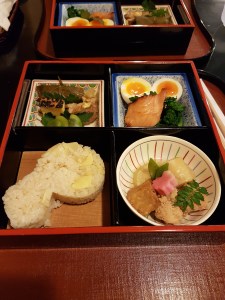 We found a fairly traditional Kyoto style dining place for lunch after a being led on a wild goose chase by the internet. As we hadn’t made a reservation, they only thing on offer was a bento box…but this was unlike any other bento we had previously had.