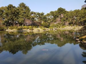 To walk off the lunch, we went to the Shukkeien Garden. My word was this place just perfect. It had beautifully sculpted grounds, giant ponds full of koi, sakura in full bloom and many places to sit and take it all in. Boy did we too. We spent hours here meandering the many paths as sitting in various places.