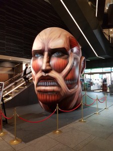 We decided to head out to Tokyo Skytree for the morning/lunch whilst our bed situation was hopefully getting sorted out. Tokyo Skytree is actually a shopping centre/lookout built around a TV tower. It really is quite amazing to see up close. We had a great time here. There were lots of really awesome little shops that had unique little treasures. There was also a promotion on at the time which was called Attack on Skytree, so there was quite a few Attack on Titan installations around which was pretty cool. We didn’t end up going up to the top of the tower.