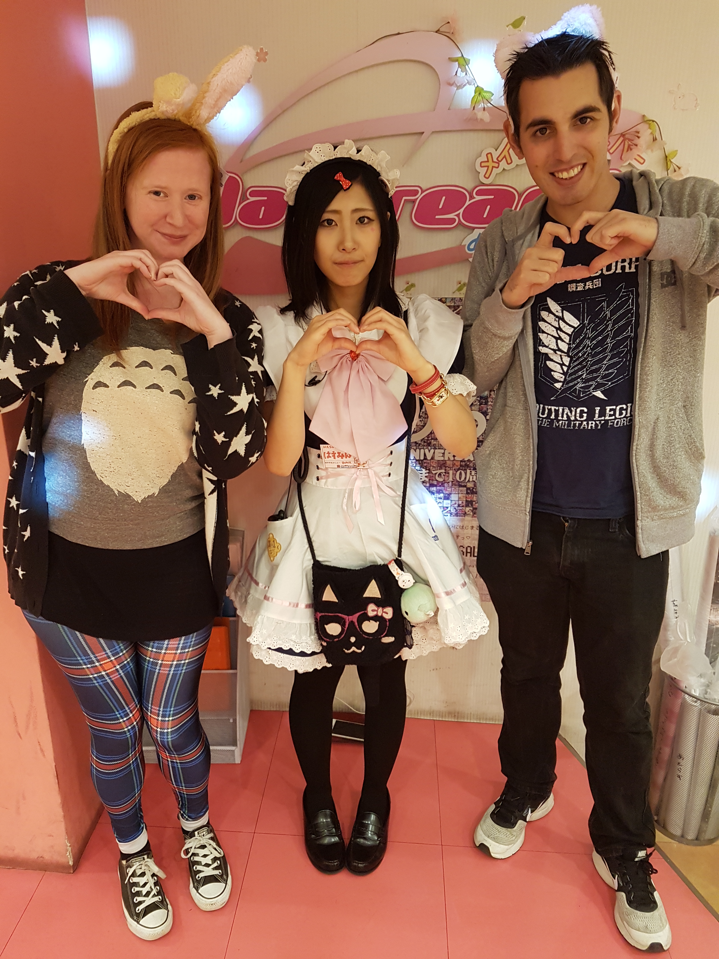 George really wanted to go to a maid cafe. I was a little dubious about it as I knew what they actually were but he was quite adamant that the internet wouldn’t steer us wrong. All I am going to say is HAHAHAHAHA uhhhh the look on his face was just perfect. And yes, we did all the hand movements and singing. Oh and we were witness to a 43 year old man celebrating his Birthday by himself at said maid cafe on his lunch break, whilst dressed up as an angel maid. The costume was short, it didn’t leave much to the imagination. But it was fantastic. I have been told that I was allowed to post one photo from the maid cafe. Enjoy.