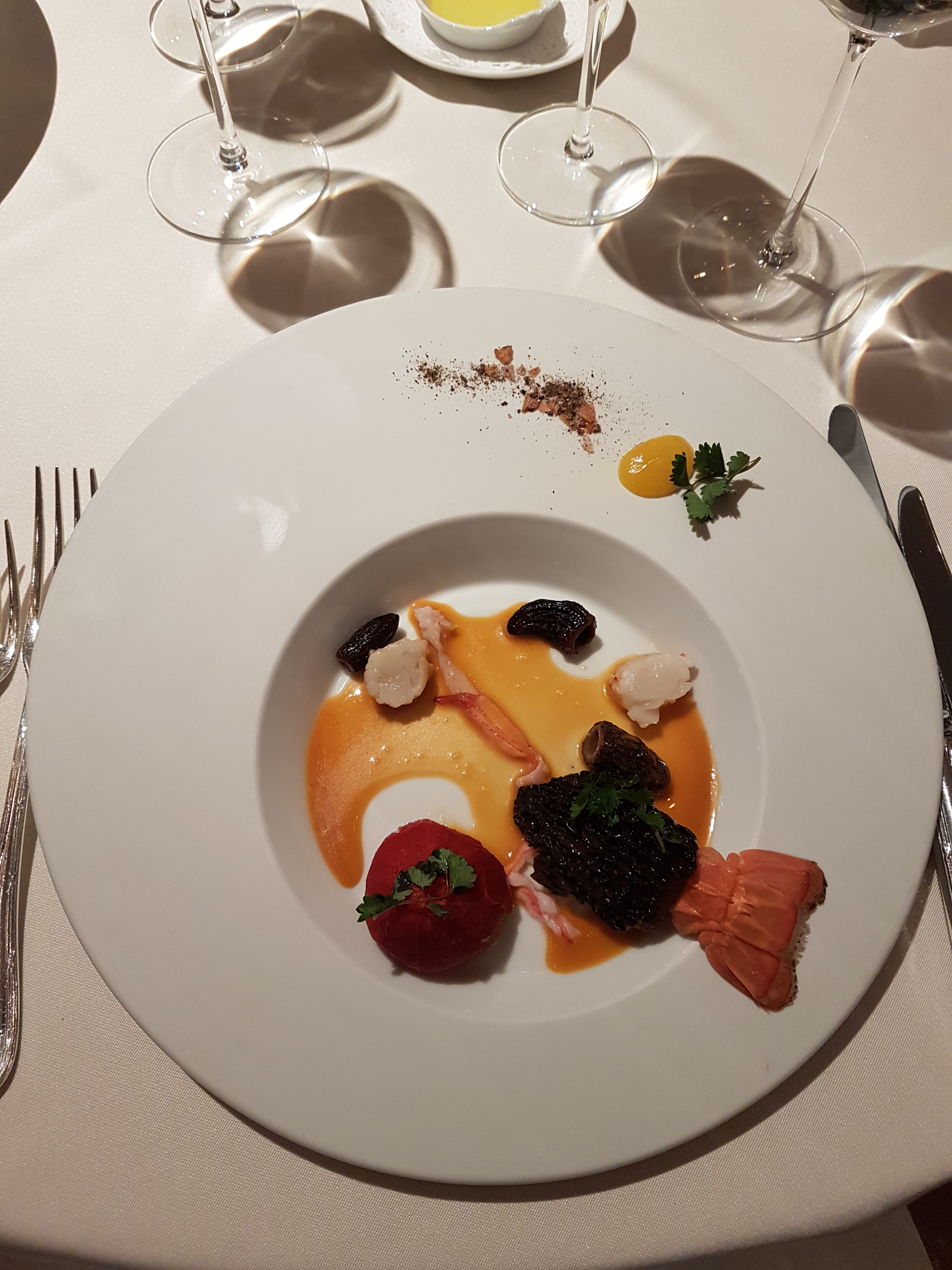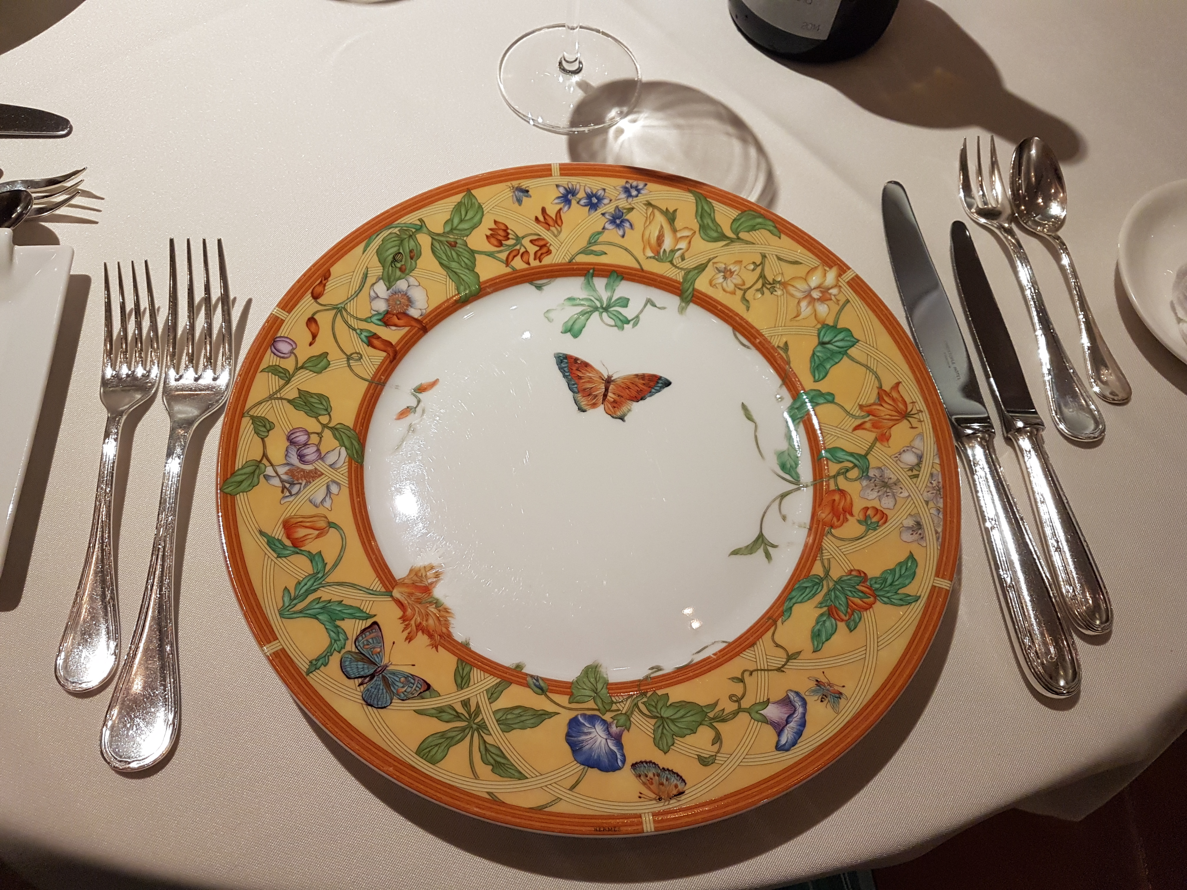 We were welcomed by this plate. It was a Hermes plate and it was just for show. We didn’t eat off it at all. It was taken away when we had our wine poured. It truly was a beautiful plate.