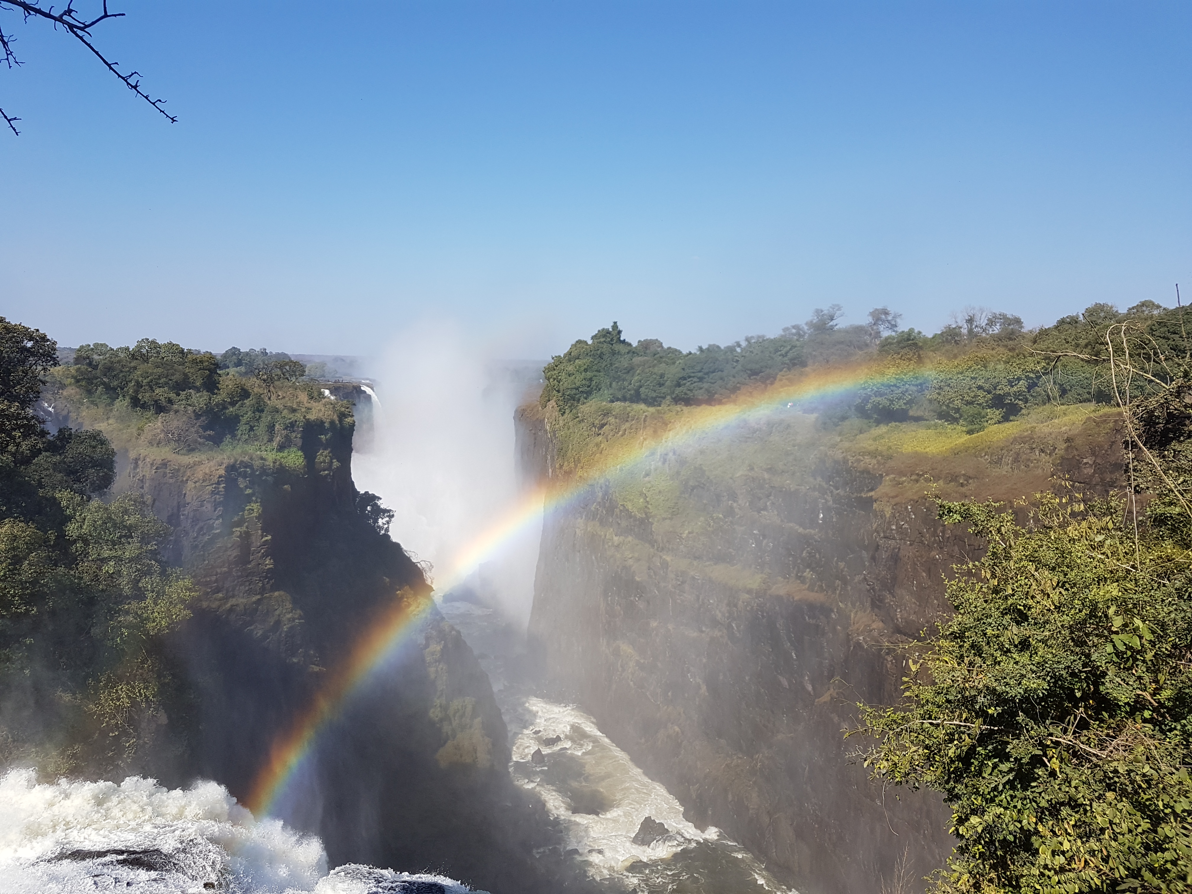 We were picked up by a guide who then took us to the Victoria Falls tour that was included in our safari package. The falls were amazing. So powerful and moist. There were rainbows everywhere and although it was a beautiful sunny day it felt like we were being rained on from the mist at the falls. Unfortunately, I wasn’t able to do one of my bucket list items which was sitting in the devil”s pool at the top of the falls. There was just too much water, but seeing the falls with that much water flowing was a spectacular sight.