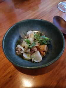 Squid, dry aged beef, finger lime & beach succulents. This was a very interesting dish that had many textures and flavours. The native beach succulents added a really nice touch to this.