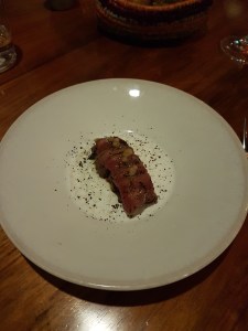 Wallaby, smoked wattleseed miso, avocado & emu bush. So tender and a flavour combination like nothing I have tasted before, but in a good way.